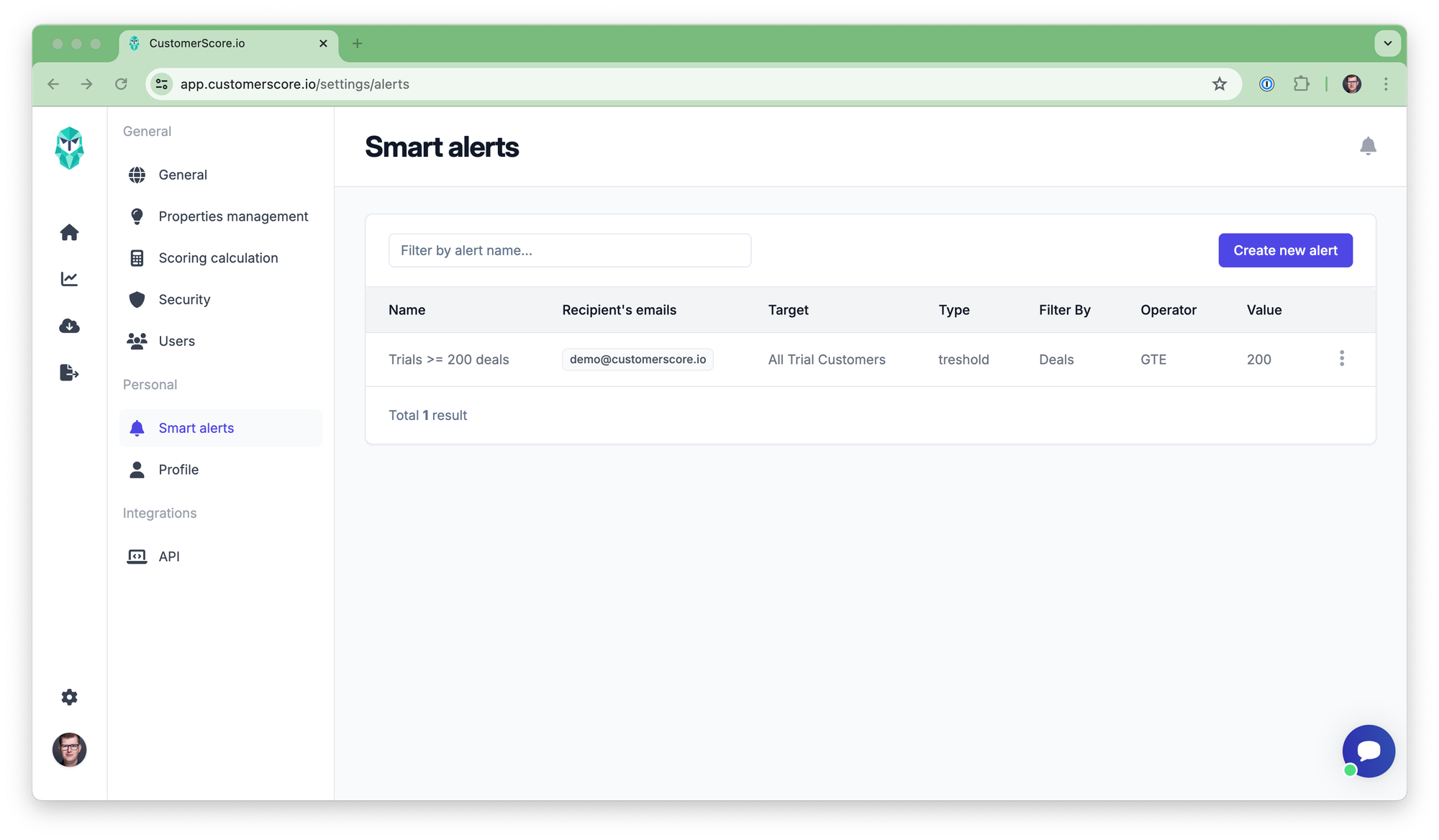 Smart Alerts in Customerscore.io are a powerful tool to keep you informed about significant customer activities and enable timely responses. By setting up and customizing alerts to your specific needs, you can enhance customer engagement and operational efficiency.