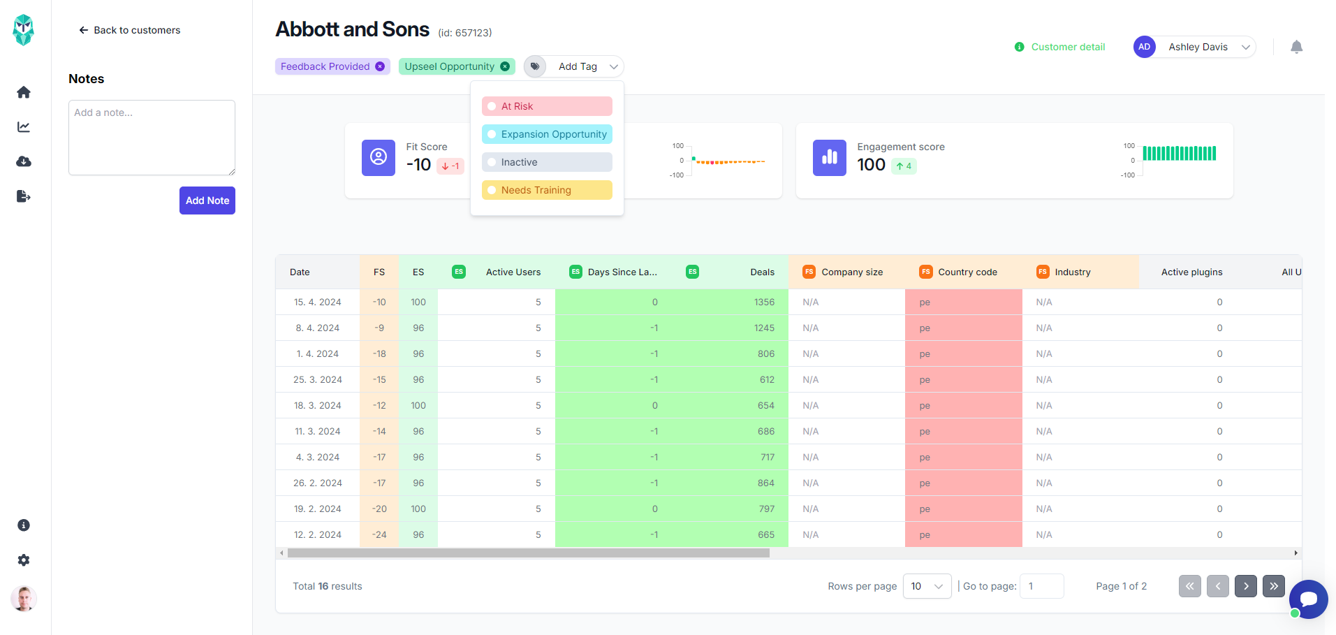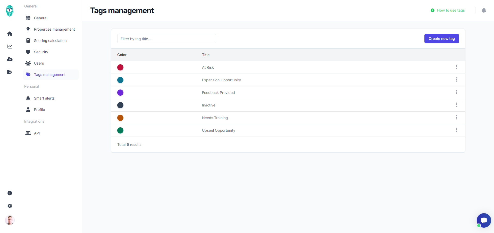 Tags are a new tool in the Customerscore.io application, designed to improve your work with customers. Tags are shared among all users in a company account, and you can find their settings in Settings->Tags management section.